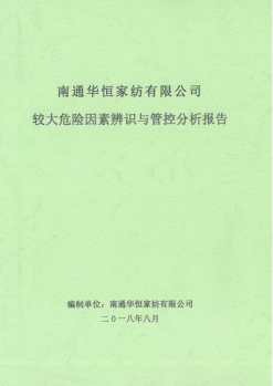 澳林为南通华恒家纺有限公司编制《较大危险因素辨识与管控分析报告》 发布时间:2018/8/32018年8月2日下午两点我公司为南通华恒家纺有限公司编制《较大危险因素辨识与管控分析报告》,由海门市安监局领导、南通市专家的检查,得到充分的肯定,通过了验收。 ... |